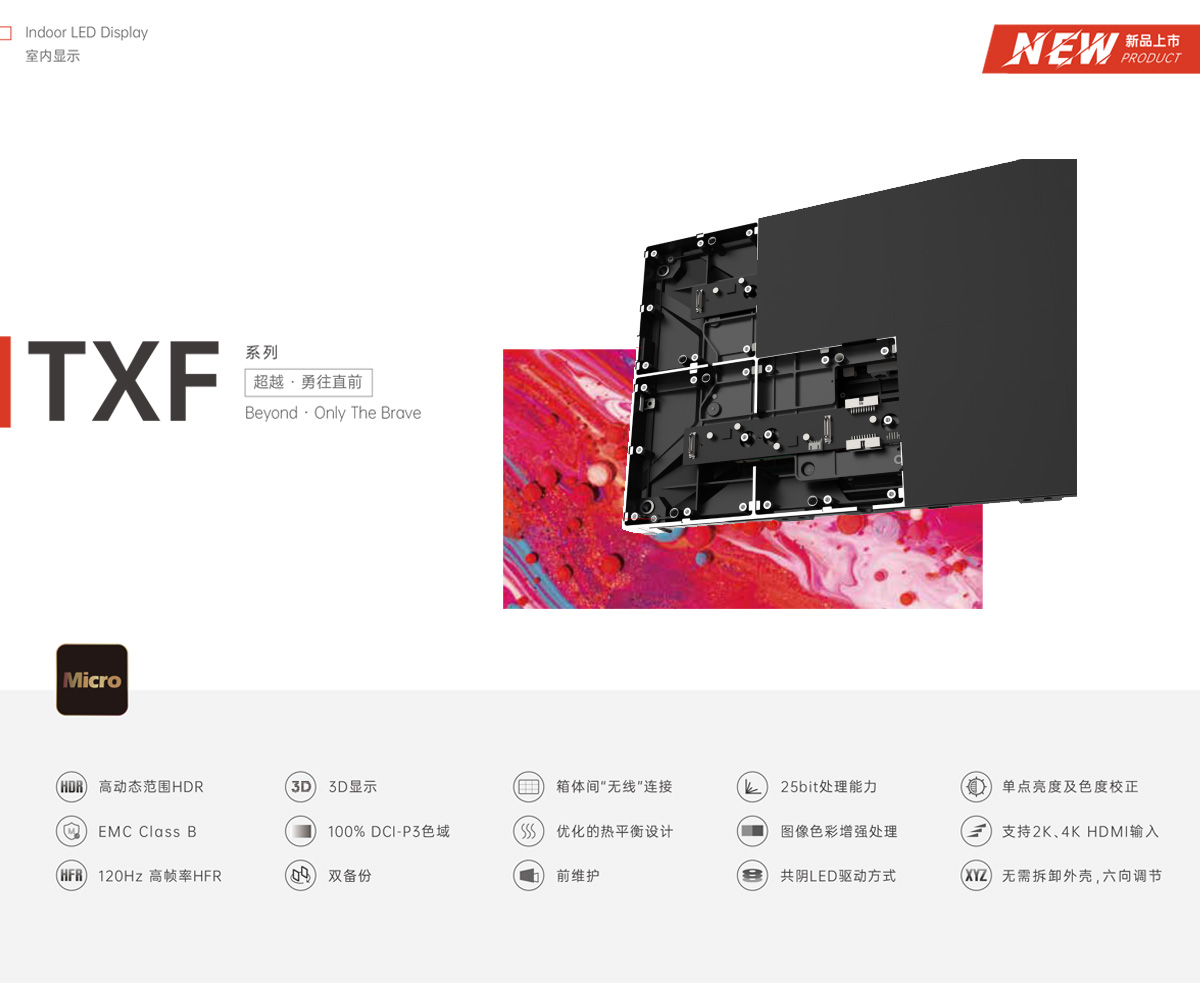 超薄完全前維護 無拼接縫隙 像素間距(mm):0.9/1.2/1.5/1.8/2.4